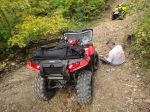 first time not paying attention and looking at the scenery I ran into the back of Cali, busted up my driver side A-Arms. He had stopped to retrieve Chads hat when it flew off, this all happened within seconds (not fixable on the trails, but we were done for the day anywayz, another story, this was at another trail about 2-3 weeks earlier).
